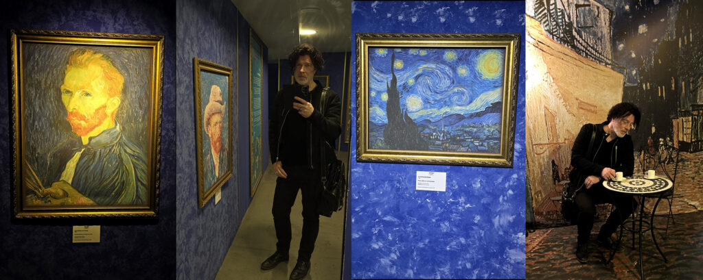 Finally caught up with the Van Gogh Immersive Art Experience. Missed it when it was in Sweden, but now we got to fully immerse ourselves in his life and genius art. There was no cut-your-ear-off experience, but I got to sit in the chair at the cafe terrace on the Place du Forum (sort of…).