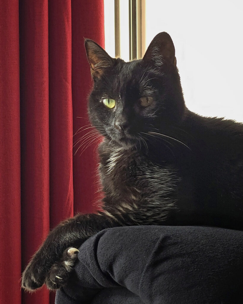 Losing the Nugget broke us completely, and we still haven’t healed from this loss. She was a family member, a best friend, an anchor, a shiny black purring bunch of joy, and an antidepressant. Her presence kept us whole and calm. After all these months without her, I still see a Velvet-shaped hole everywhere I look. For being this little black void, her presence was enormous.