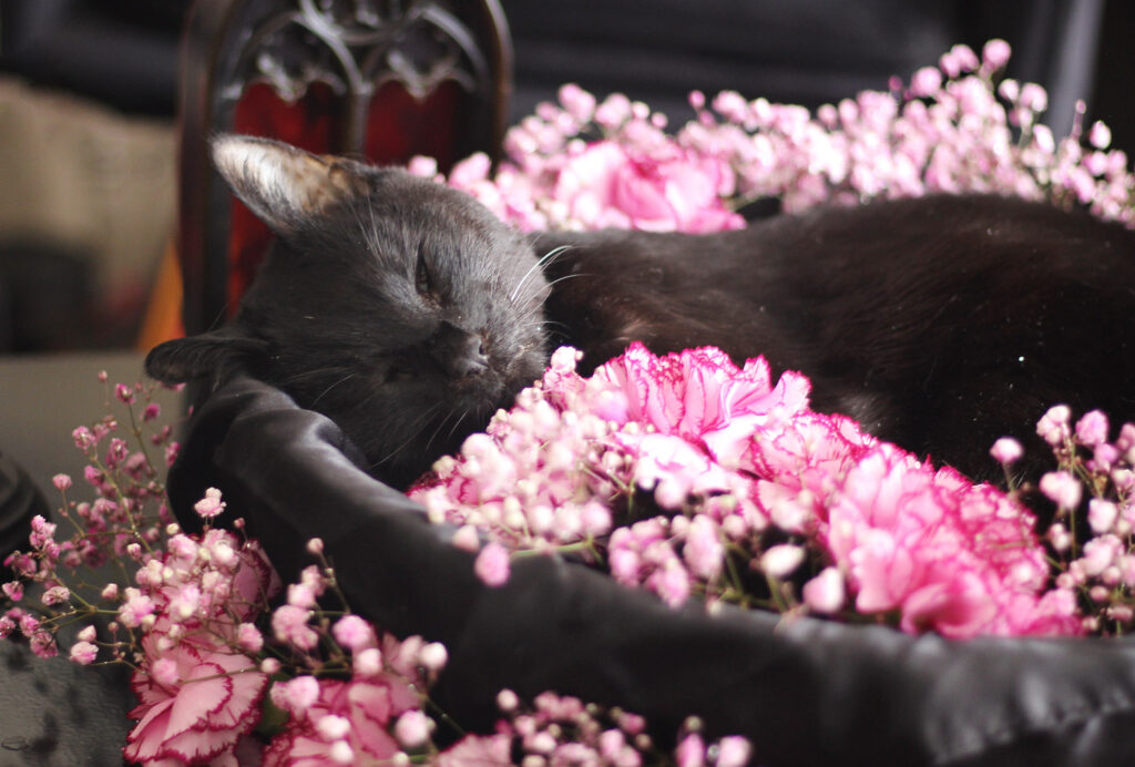 If I would try to describe the Nugget, I would say that she was a Lady. An anxious lady that didn’t like strangers, unexpected changes, or being lifted, but definitely a Lady. Her coat was black and shiny like velvet (hence the name), with one bright white whisker, and a very boopable nose. She was so well-behaved, never scratched, begged or caused any trouble. Like a true Lady. We always said that if she would have been a human, she would have been a noble Italian countess in a black dress and with a pearl necklace, sipping Champagne, and tut-tutting at everything she considered loud or vulgar. The times when we took her to the vet, she always behaved so well, even if she hated it, but as soon as we got back home, she gave us a loud and insulted meow that no doubt meant “How dare you!” So just like a Lady, she kept her face in public and saved the scolding for behind closed doors. Velvet was as classy as she was elegant and beautiful.